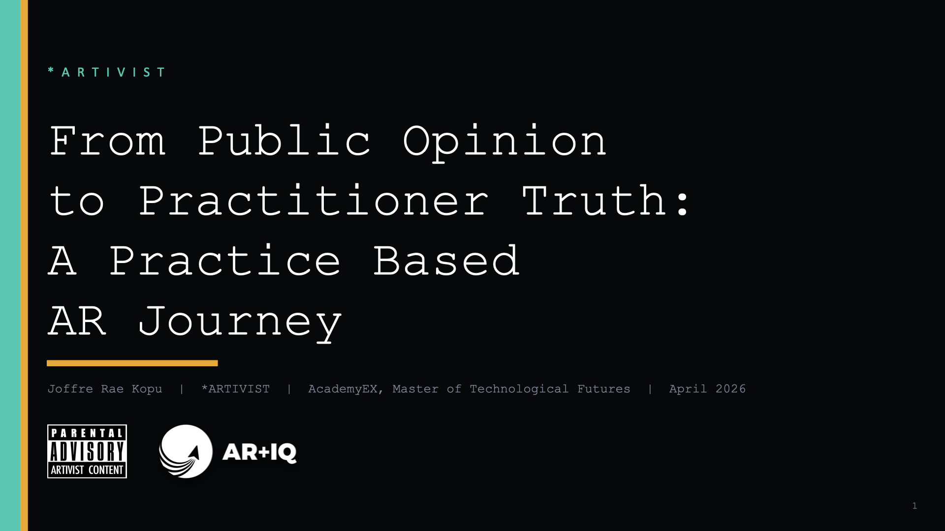 “Ngā mihi, my name is Joffre Rae Kopu, and this presentation is titled From Public Opinion to Practitioner Truth: A Practice-Based AR Journey.