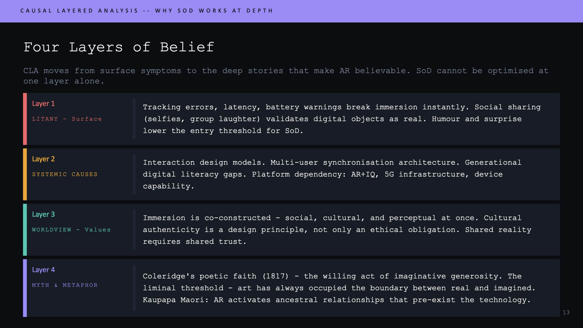 CLA helped me show that SoD cannot be optimised at one layer alone. Belief in AR is technical, social, cultural and symbolic all at once.”