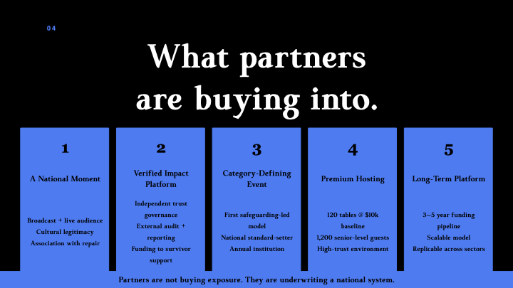The Tika Gala is designed as a nationally significant cultural event that combines performance, storytelling, and philanthropy to support systemic reform and survivor services in Aotearoa.