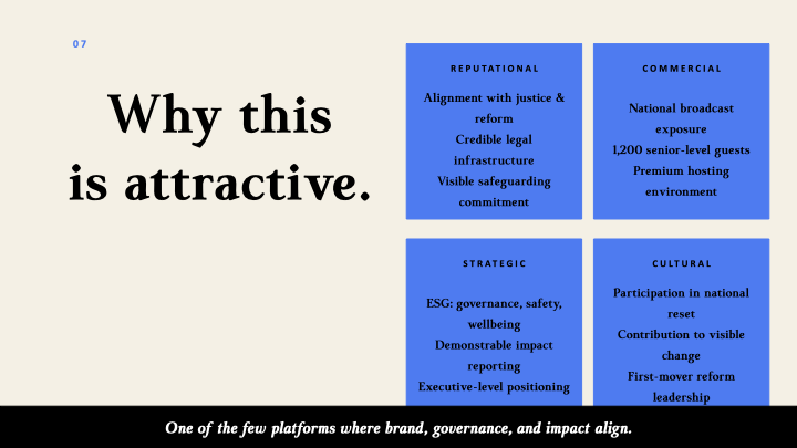 It gives all involved the opportunity to be part of a constructive, accountable national moment with real social and institutional outcomes.