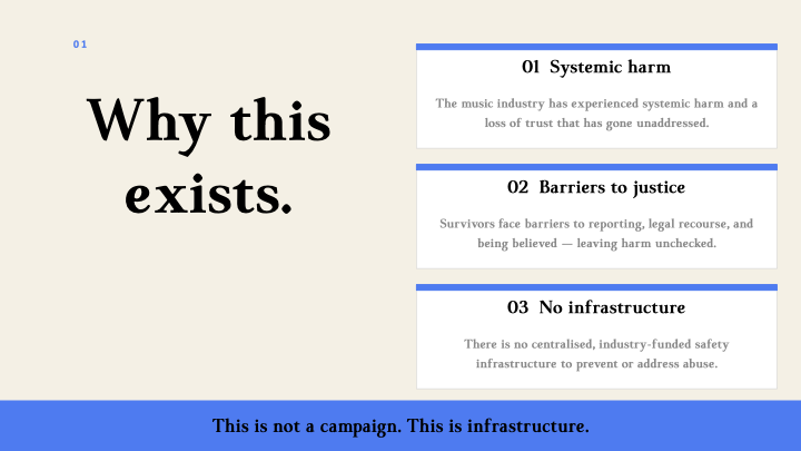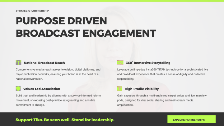 The Tika Gala is a premium, values-led national event that uses live performance and broadcast to fund survivor-informed reform, showcase best-practice safeguarding, and create a visible commitment to change across the music sector.